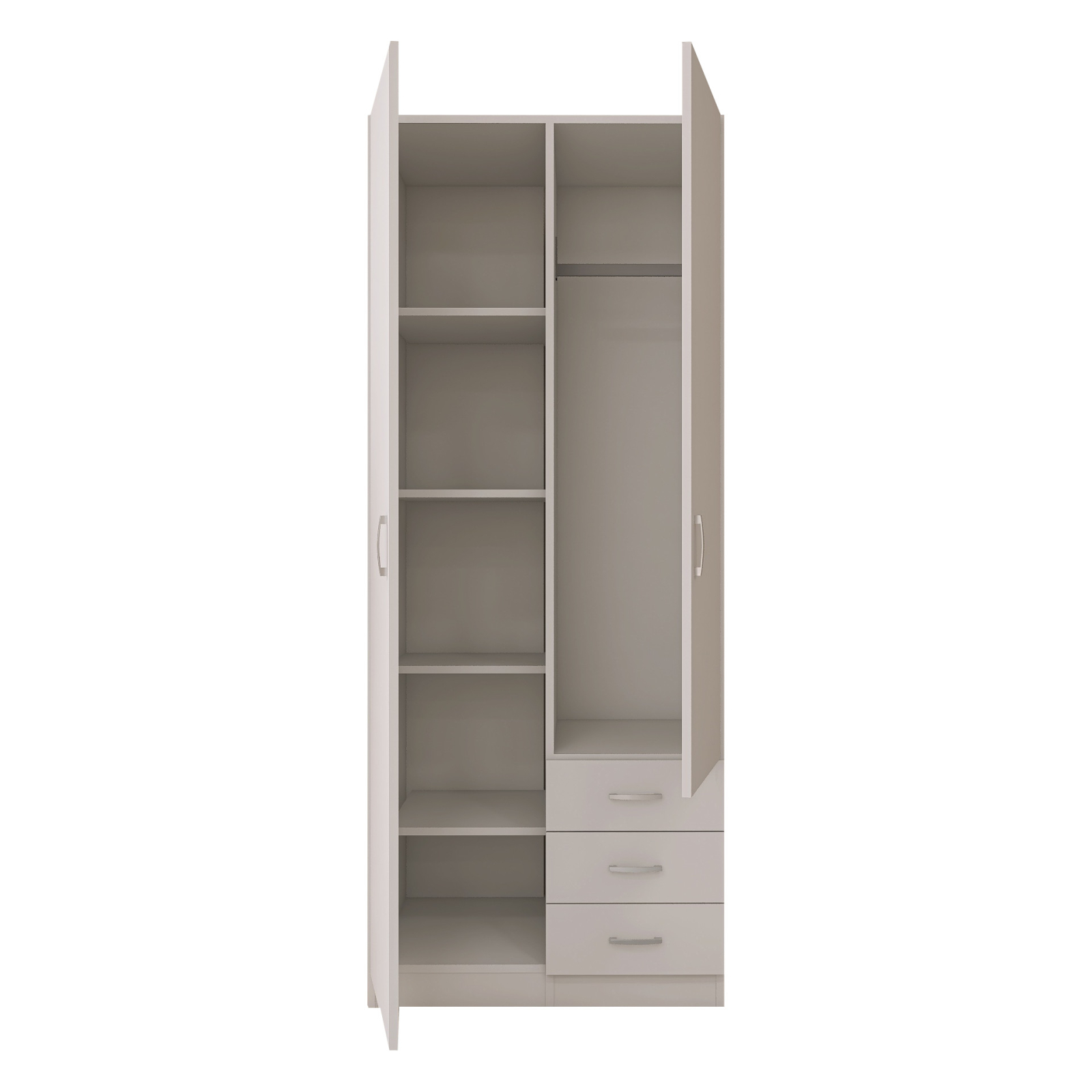 Acest dulap mixt cu 2 uși și 3 sertare spațioase este soluția ideală pentru organizarea eficientă a garderobei. Designul modern și finisajul Alb Mat îl fac potrivit atât pentru dormitoare mai mici, cât și pentru dressinguri generoase.