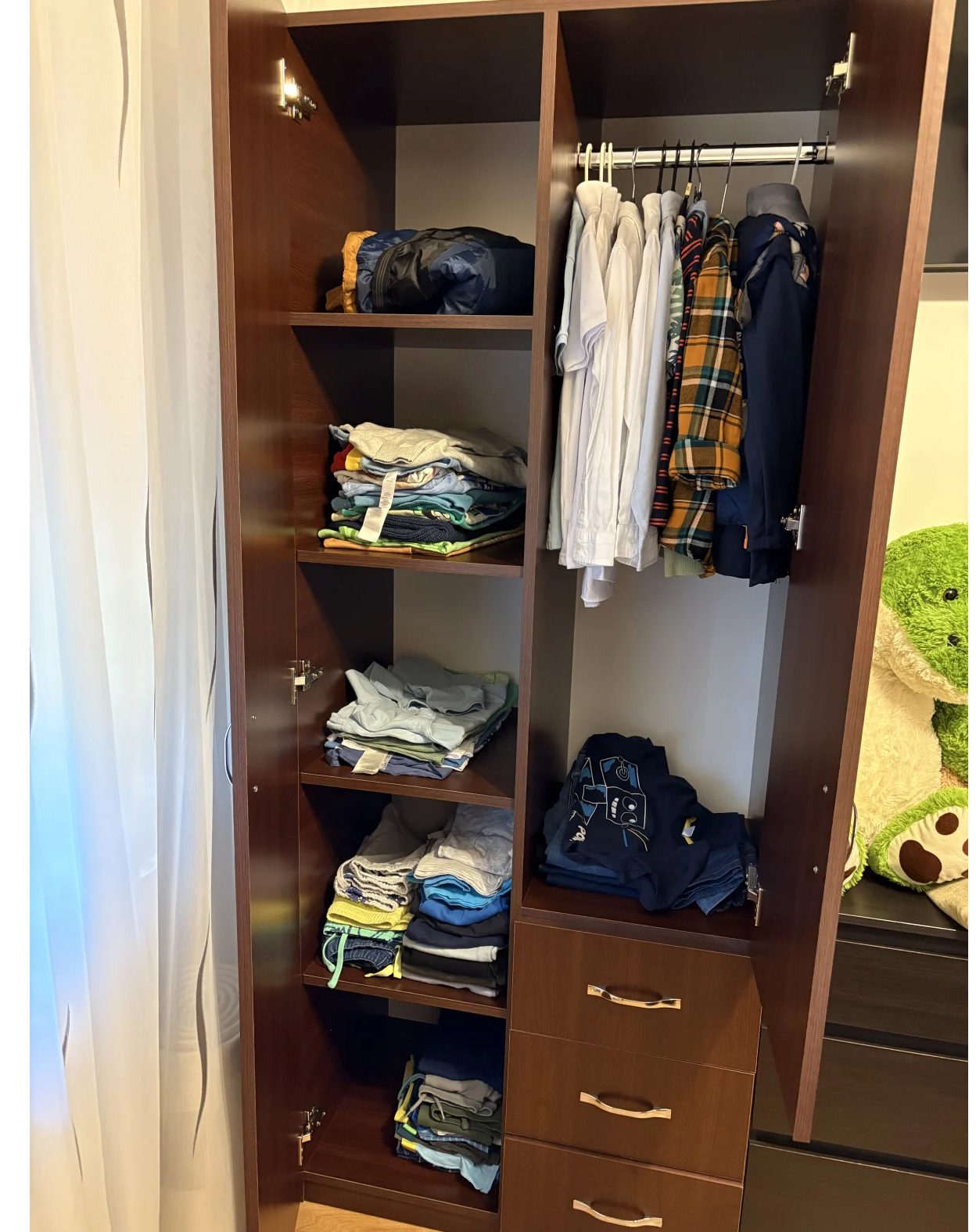 Raport calitate preț chiar bun. Material destul de calitativ, faptul ca are sertarele pe partea cu bara de haine și nu pe partea cu rafturile a făcut diferența față de alte modele. Este suficient de încăpător - eu am luat 2 pentru camera băieților. Per total sunt mulțumită de achiziție. Singurul minus este ca nu oferă și poribilitatea de a achizitiona și cu asamblare. Am apelat la o cunoștință pentru asta.