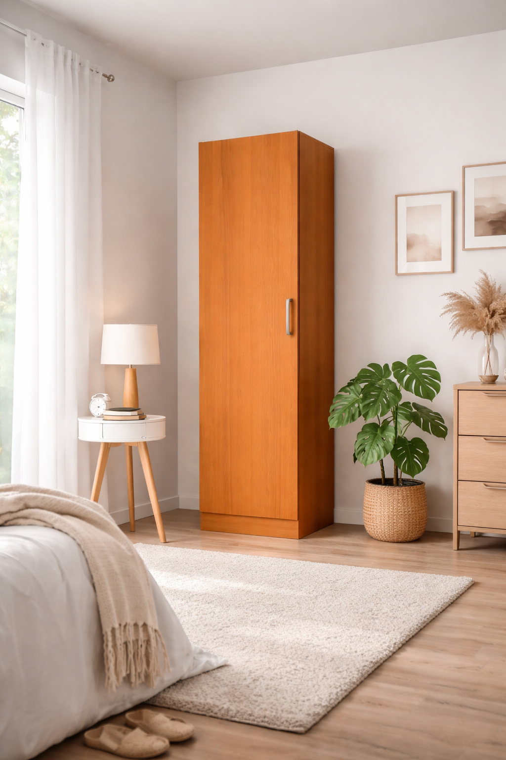 Comunicare foarte bună , livrare a doua zi după confirmarea comenzii , ambalare atentă . Dulapul are în fiecare laterală câte 4 găuri de fixare care sunt foarte vizibile și care nu apar pe imaginea de pe site . Mânerul este diferit și foarte subțire/tăios .