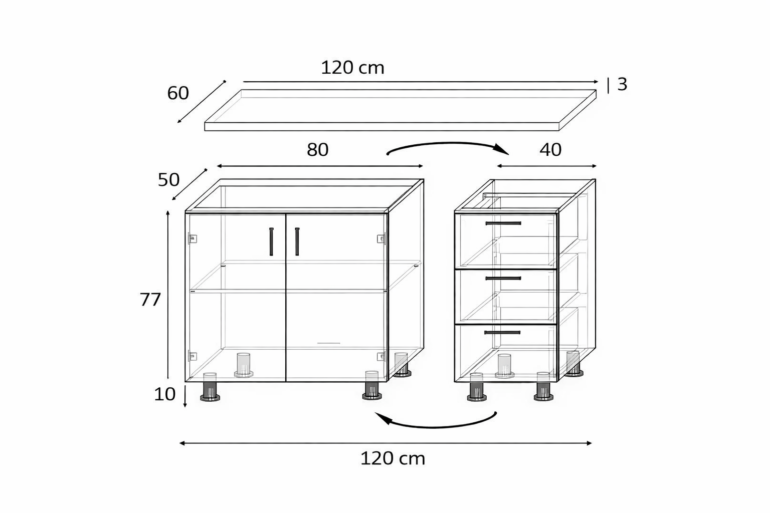 Corp Bucătărie Inferior 120 cm cu Blat Inclus – Organizare Eficientă, Sonoma