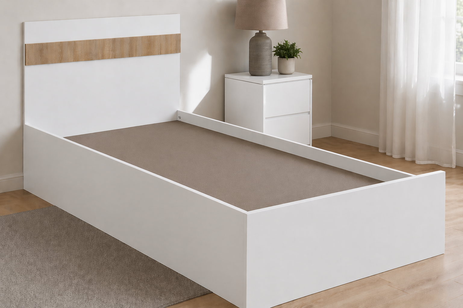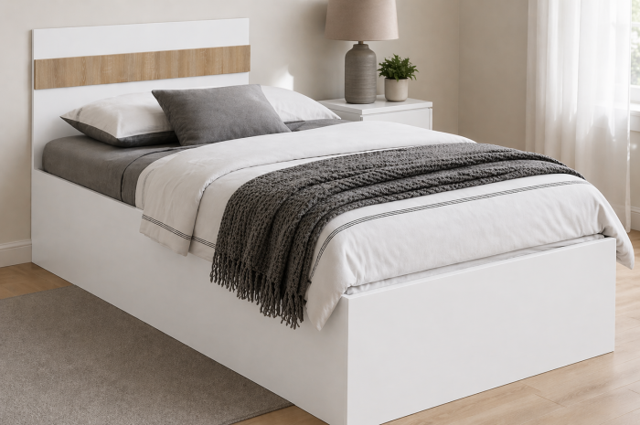 Dimensiunea de 200x90 cm îl face potrivit pentru utilizare zilnică, asigurând confort și stabilitate. Construcția solidă din PAL melaminat de 18 mm garantează rezistență în timp și o utilizare fără probleme, fiind o soluție eficientă pentru orice dormitor modern.